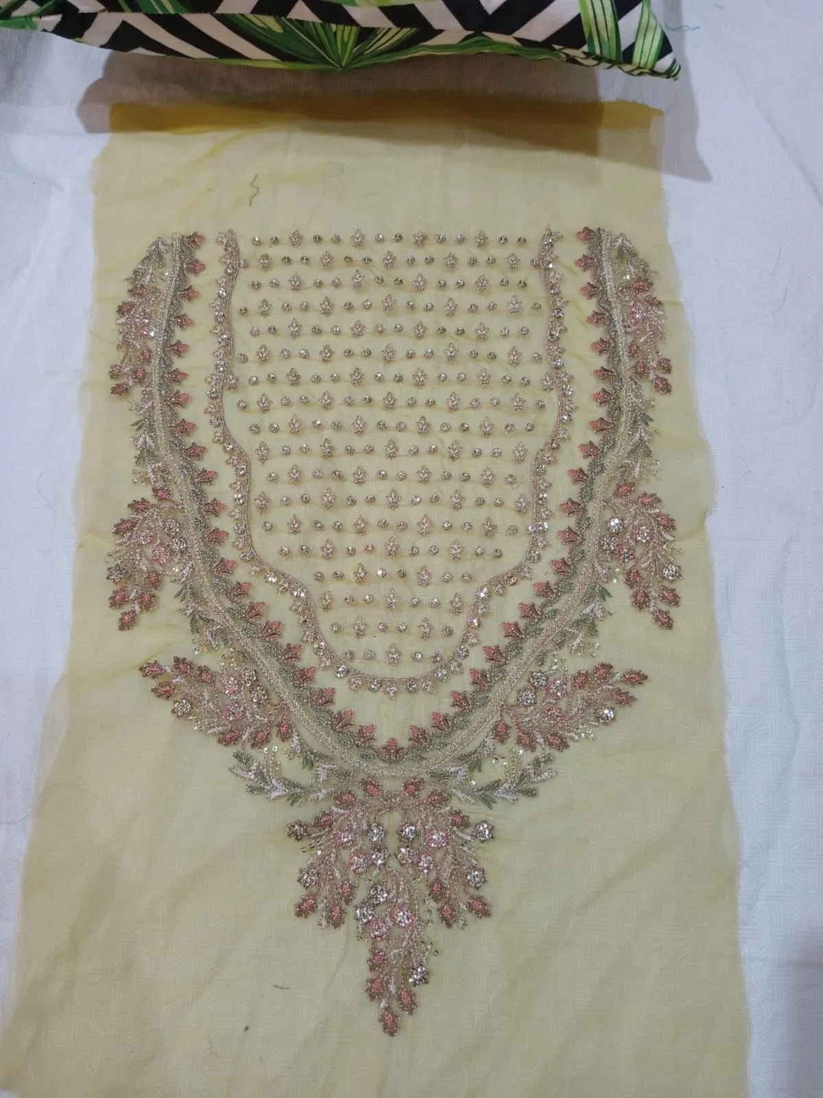 fancy neckline/lace for ladies clothes Posted on August 6, 2025 By Muryam 0 comment Uncategorized Product Description Fancy neckline Thread with zari and sequence Base organza Length 18″ Product Specifications Specification Value Brand No Brand SKU 831429102_PK-3779877381