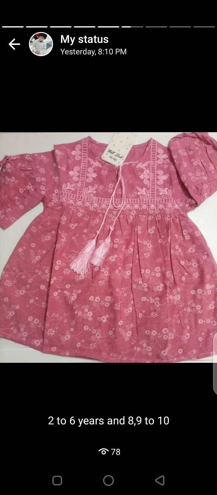 Khaddar Embroidered kids frock Posted on August 6, 2025 By Muryam 0 comment Uncategorized Product Description Embroided top Fabric khaddar Size 2,3,4,5 years Product Specifications Specification Value Brand No Brand SKU 594476820_PK-2739201616 Occasion Not Specified What’s in the box frock top