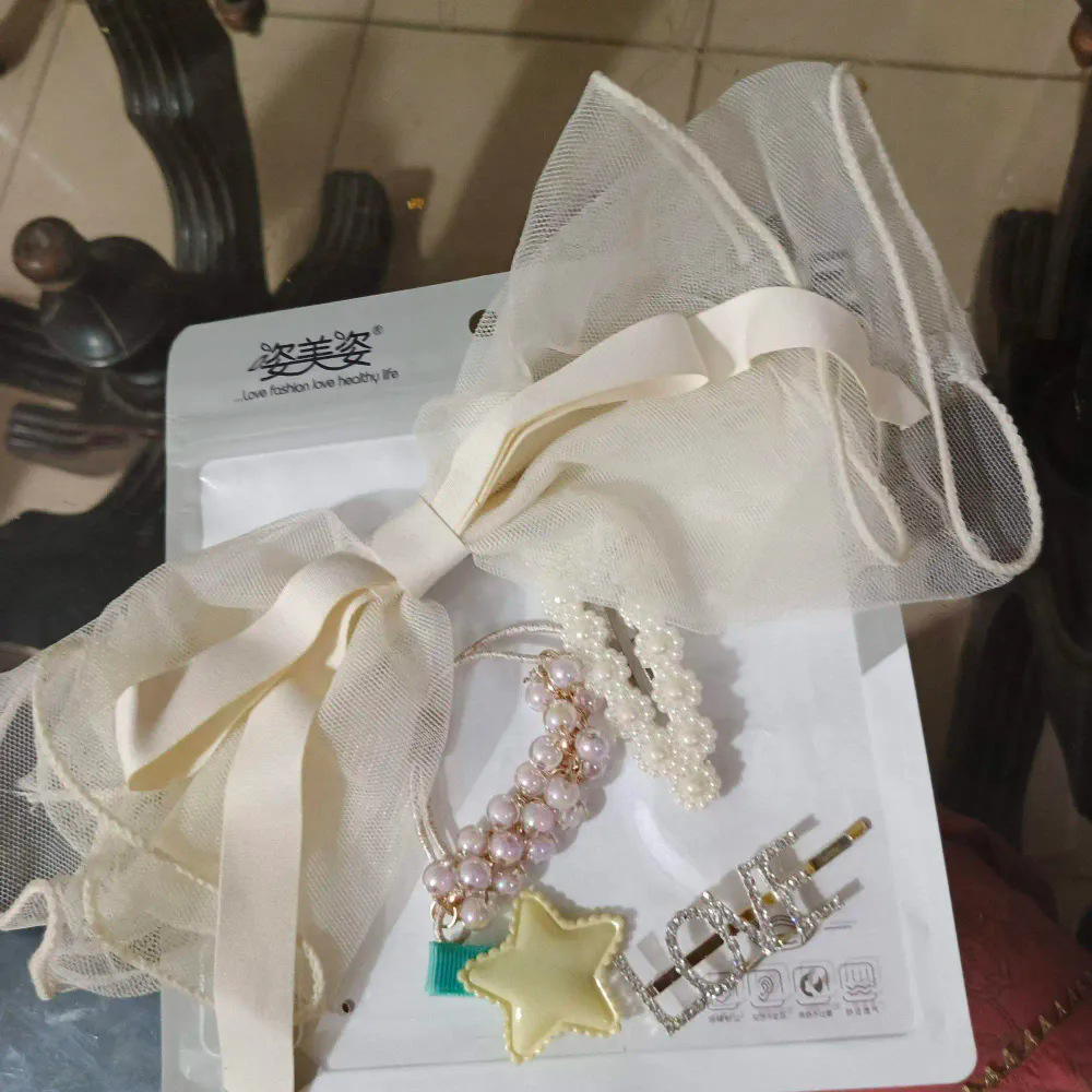 1. **Net bow clip**: A delicate hair accessory featuring a bow made from netted fabric, adding an airy and elegant touch to hairstyles. Ideal for creating a charming and sophisticated look, suitable for various occasions.