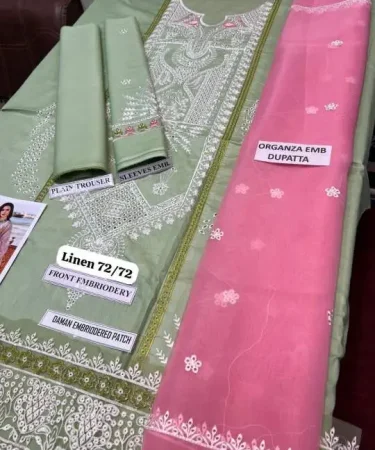3 piece suit lawn unstiched embroiderd chiken kari chiffon dubbta