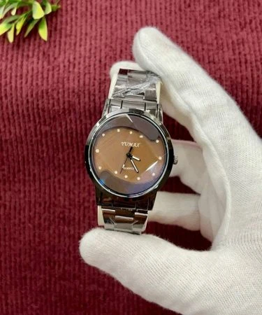 Men’s Quartz Chain Strap Watch – 1 Pc Stylish Round Dial in Black/Brown
