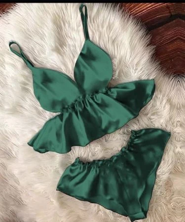 WOMEN V-NECK EYELASH CAMI BOWKNOT SHORTS SET (PURE SILK