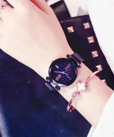 Women Mesh Magnet Fashion Watch Magnetic Strip-Black