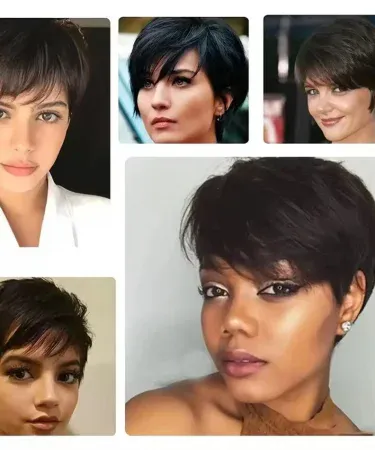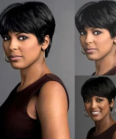 Straight Short Pixie Cut Hair Wigs Machine Made Wig For Women Hair Wigs Dark Brown Wig