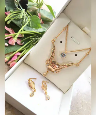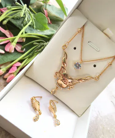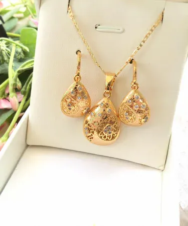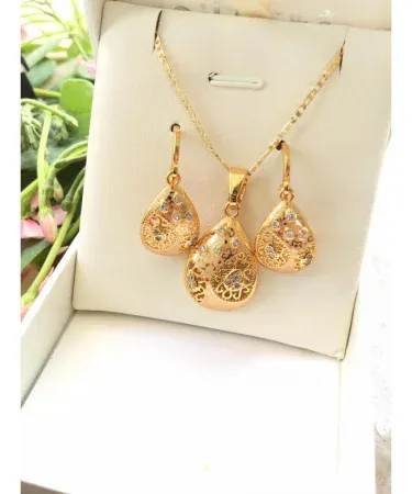 Elegant jewelry – double Locket Set – Golden with beautiful box