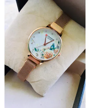 Women Luxury Fashion Watch with printed dial and Magnetic Strip – Rose gold with Gifting box