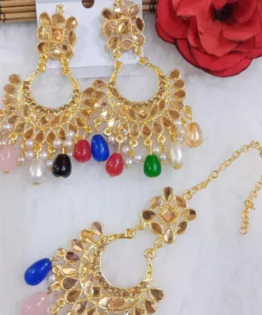 Golden Tika Bali Antique jhumkas designs Fashion jewelry German golden