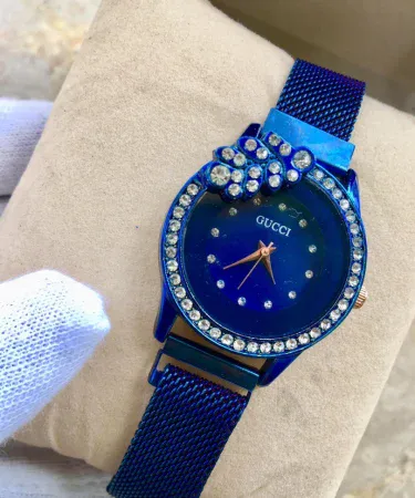 Women Mesh Magnet Luxury Fashion Watch Magnetic Strip – Blue with Gifting box