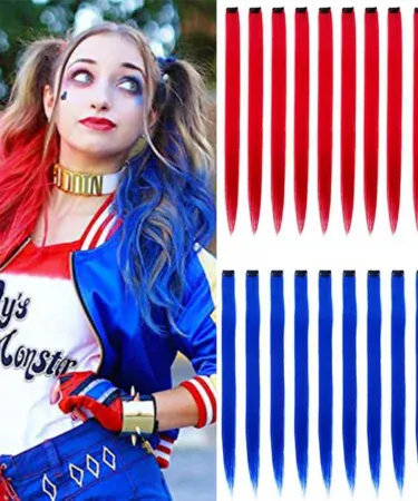 Pack of 6-PCS 3 RED 3 BLUE Long Straight Hair Clip Extensions for girls and women’s -3 RED 3 BLUE