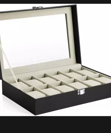 BLACK LEATHER WATCH BOX GIFT SET – 12 SLOT