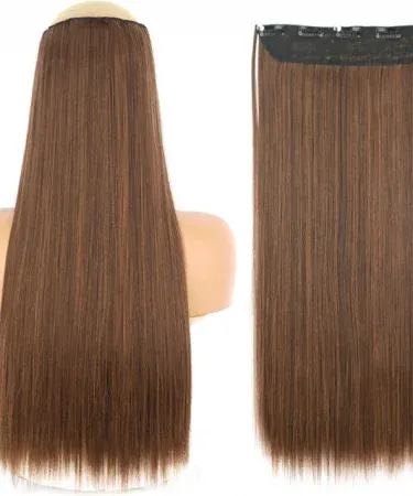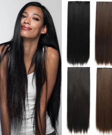 60cm Heat Resistant Women Girls Hair 5 Piece Clips in Straight Hair Extensions Wigs