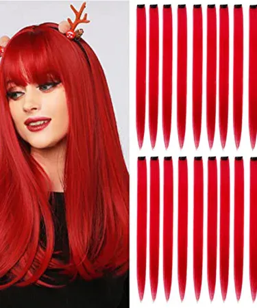 Pack of 6-PCS RED Long Straight Hair Clip Extensions for girls and women’s – RED