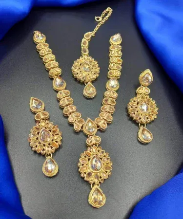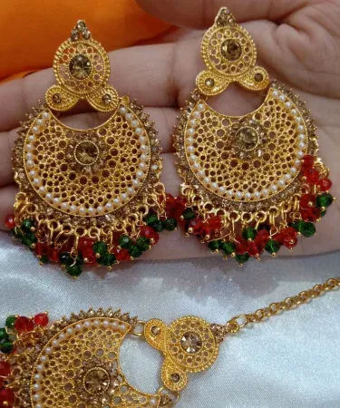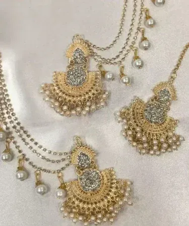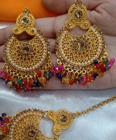 Fashionable Stylish designs Kundan Jewelry Earrings with tika with sahara for beautiful girls.