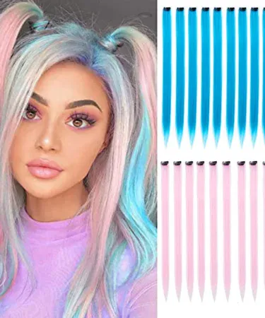 Pack of 6-PCS 3 baby pink 3 light blue Long Straight Hair Clip Extensions for girls and women’s