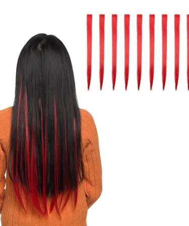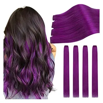 3Pcs Straight Synthetic Clip Hair Extensions- Purple Shade