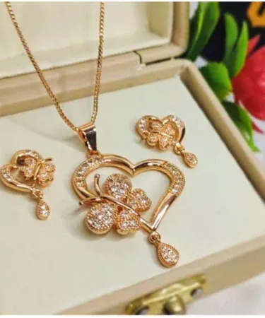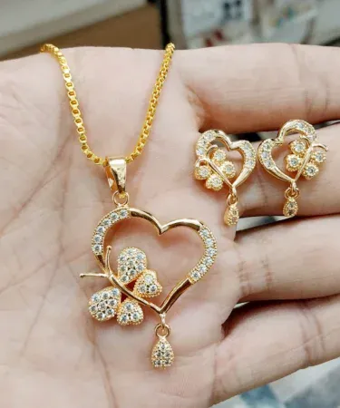 Elegant Heart Shape Design Golden Polish Locket Set For Girls And Women’s