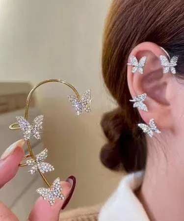 Pair Trendy Butterfly Ear Cuff Earrings for Women – Snowflake Crystal Four-Leaf Flower Non-Pierced Ear Nail Clip On Earrings for Women Simple New Collection