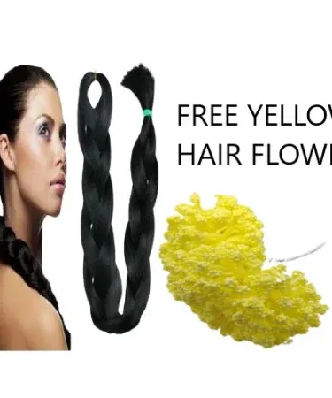 Gutt style Synthetic Hair Extension Natural Hair Color For mayun n mahandi – WITH FREE YELLOW HAIR FLOWER