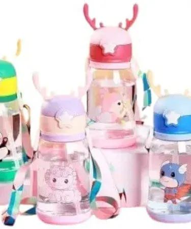 Children Bottle for Outdoor Travel School Cute Cartoon Animal Baby Water Bottle with Shoulder Strap for Boy Girl