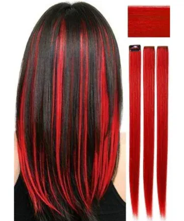 Pack of 3 red highlights hair strips extensions for girls and women’s