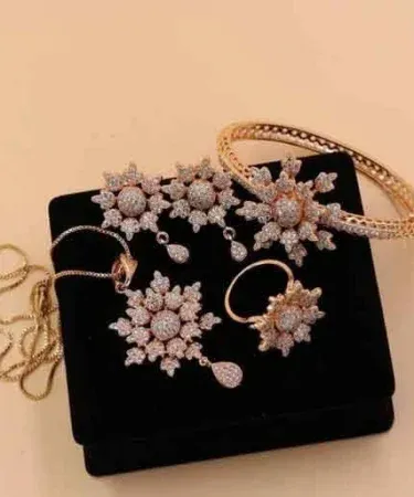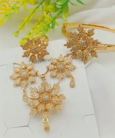 New Elegant Flower Design Zarcoon Locket set With Ring And Bracelet For Girls And Women’s