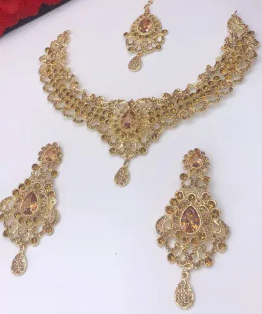 Set Zarcon Gold Plated Badam set For Her New Style long lasting polish for beautiful girls.