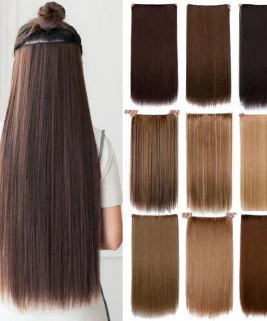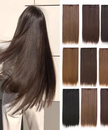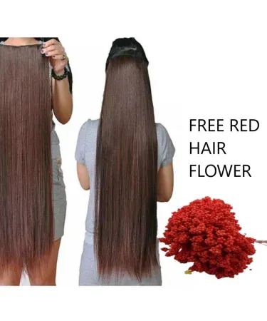 Comb Hair Extension Brown – Dark Brown- 27Inch – WITH FREE RED HAIR FLOWER