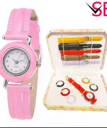 6 Strap Watch Set – Multicolored – Changeable Strap Watch without Box
