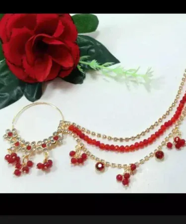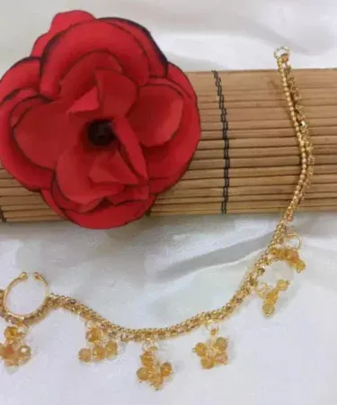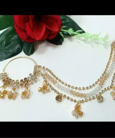 Stylish bridal golden nose ring Nath gold platted crystal drop, attached new collection