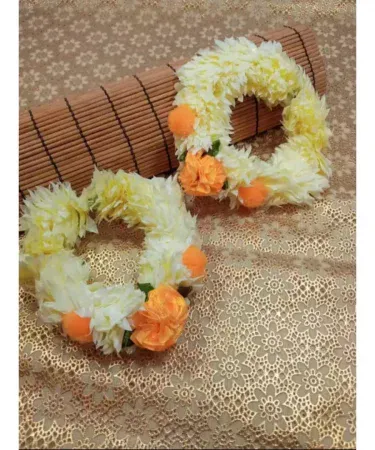 Artificial Gajra Flower kangan for Wedding Jewellery Reuseable White with yellow Flower