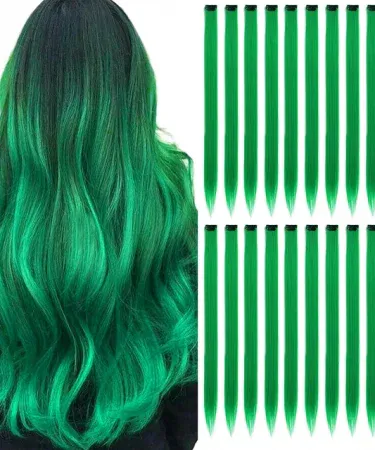 Pack of 6-PCS RED Long Straight Hair Clip Extensions for girls and women’s – green