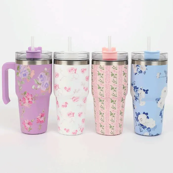 40oz Stainless Steel Tumbler with Handle & Straw