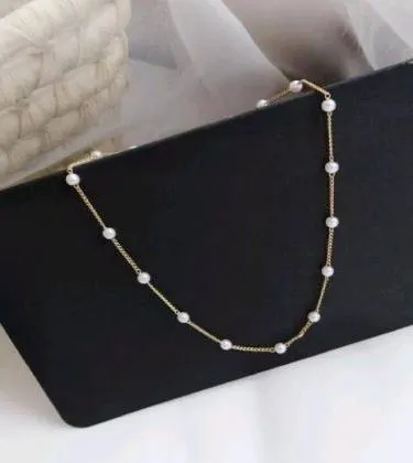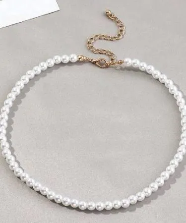 Elegant White Pearl Beaded Choker Necklace with Adjustable Golden Chain for Women & Girls