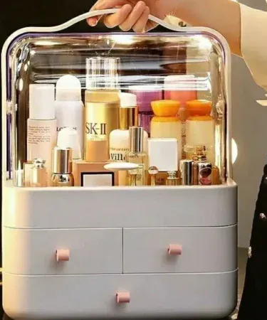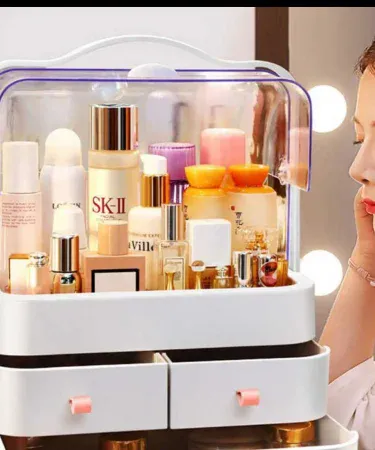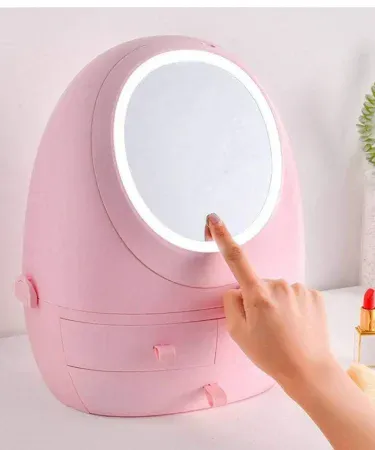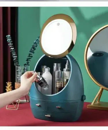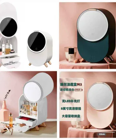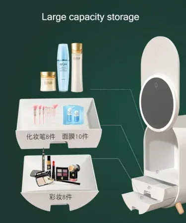 Modern Makeup Storage Organizer Box, Cosmetics Storage Display Rack with Drawer, Makeup Storage Box with Mirror
