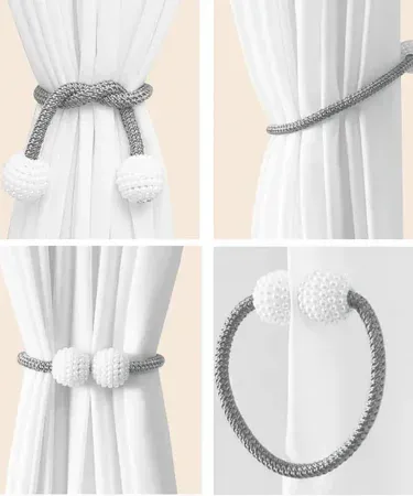 2 pcs Curtain Tie Backs, Magnetic Curtain Clips, Curtain Rope Holdbacks for Drapes for Window Decor (White)