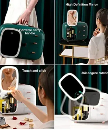 360 Rotating LED Mirror Makeup Organiser, Desktop Storage Box, Skin Care Products, Lipstick Display Organiser for Dressing Table.