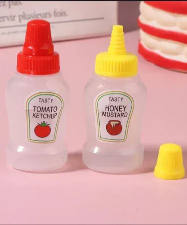 2PCS 25ML(0.8 fl oz) Mini Refillable Ketchup Bottles for Salad Dressing Tomato Ketchup Mayo Syrup Mayo Squeeze Containers for Kids Adults Bento Box for Office Workers