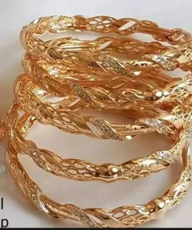 pair of 2 Bangles gold plated zircon design long lasting polish for women