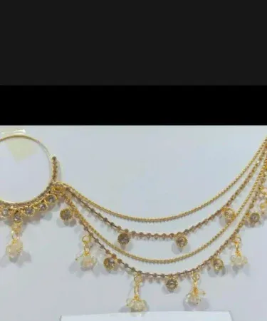 Stylish bridal golden nose ring Nath gold platted crystal drop, attached new collection 4 line