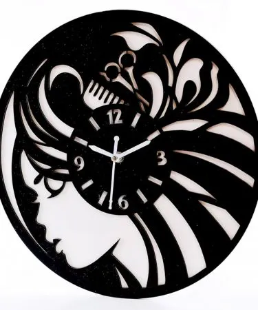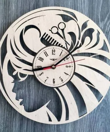 Laser Cut Wooden Wall Clock for Hairdressers & Salons – Artistic Hair Stylist Design – Home Decor & Gift Item – Premium Engraved Wood Fancy Clock