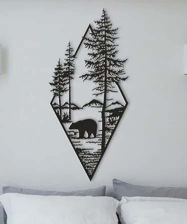 Laser Cut Forest Wall Art – Bear & Trees Acrylic Decoration Piece for Home, Living Room & Bedroom Wall Hanging