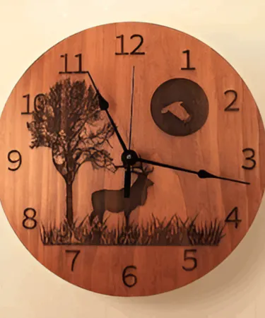 Engraved Wooden Wall Clock – Deer & Tree Nature Design | Premium Home Decoration Rustic Wall Clock for Bedroom, Lounge & Office