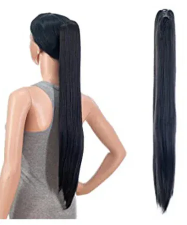 Straight catcher hair extension for girls, ponytail hair extension-natural black color
