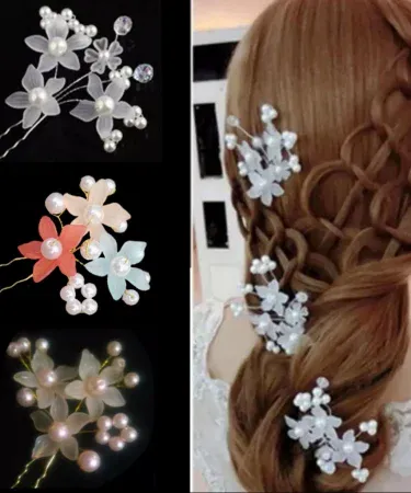 Pack of 3 Fancy Hair pins Large U Shape Pins,Jura Pins, Braide Flower Pins & Bun Pins for Wedding Bride Party Hair Accessories