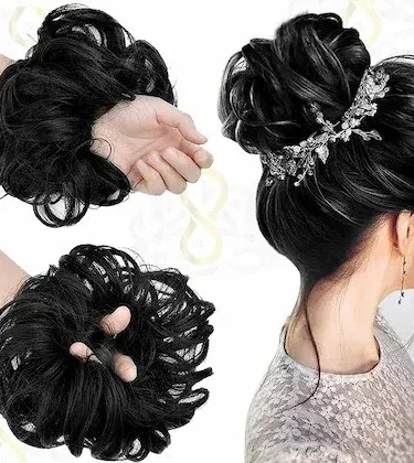 New Arrival Synthetic Extensions Messy Scrunchies poni Hair Care Pieces for Women shine Black color