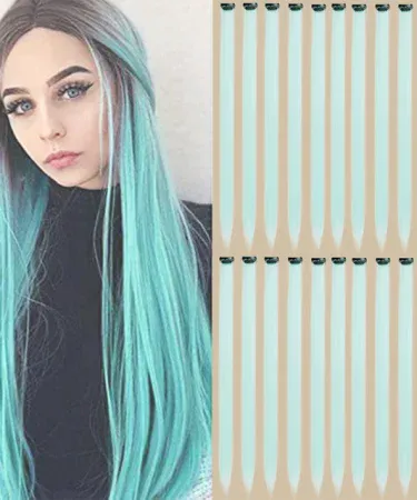 Pack of 6-PCS Long Straight Hair Clip Extensions for girls and women’s -Light Blue