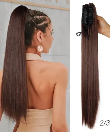 Straight catcher hair extension for girls, ponytail hair extension-medium brown color – Burgundy