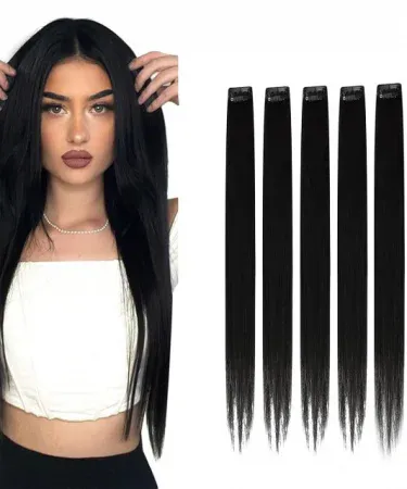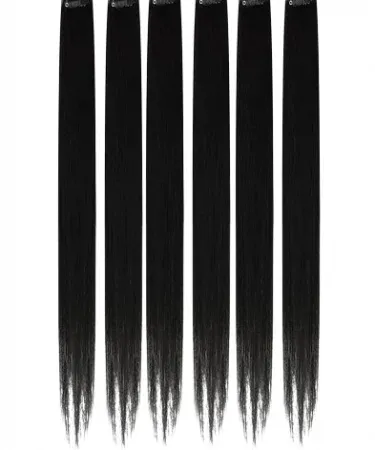 6 pieces Black single clip hair extension for girls