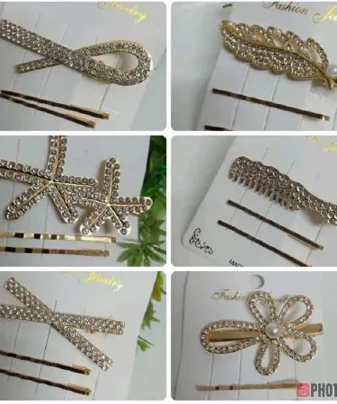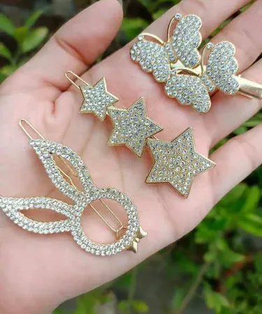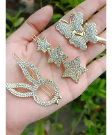 3Pcs Shiny Gold Hair Clip For Women Girls Snap Crystal Hair Stick Rhinestone Hairpin Waterdrop flower moon Hair Accessories