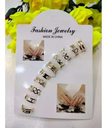 10PCS/SET GOLDEN/SILVER ADJUSTABLE RING SET WOMEN WEDDING ANNIVERSARY RINGS FOR GIRLS